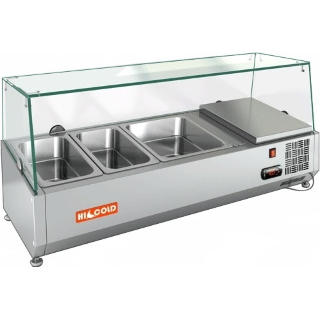 Каталог оборудования Холодильное оборудованиеВитрины для ингредиентовВитрина холодильная для ингредиентов HICOLD VRTG 1000 к PZE3 (1/3) Витрина холодильная для ингредиентов HICOLD VRTG 1000 к PZE3 (1/3) Код товара: 064-651 Поделиться: WhatsAppTelegram СравнитьДобавить в КПВ избранное 0 58 257 ₽ В корзину 0 шт Под заказСамовывоз сегодня бесплатно Взять в кредит Купить в лизинг Получить консультацию в WhatsApp Описание Характеристики Отзывы 0 Инструкции 3 Витрина холодильная для ингредиентов HICOLD VRTG 1000 к PZE3 (1/3) предназначена для охлаждения, кратковременного хранения и эффектной демонстрации ингредиентов, салатов и готовых блюд на предприятиях общественного питания и торговли. Витрина устанавливается на холодильные столы для пиццы серии PZE3 — в корпусе предусмотрены специальные крепления для надежного монтажа. На фото показана аналогичная модель с настольной установкой. Ключевые особенности: Корпус из нержавеющей стали — долговечность и лёгкая очистка. Электронная панель управления — точная настройка температуры. Исполнение G — стеклянная надстройка для удобного обзора продуктов. Высота витрины — 459 мм — компактное размещение на столе. Вместимость: 3xGN1/4 — оптимальная организация ингредиентов (гастроёмкости приобретаются отдельно). Совместимые модели столов: PZE3-11/SN, PZE3-11/GN HICOLD VRTG 1000 к PZE3 (1/3) — это практичная и надёжная витрина для предприятий питания, которая сочетает компактные размеры, удобное управление и профессиональный уровень охлаждения. Отлично подходит для пиццерий, кафе и ресторанов, где важны скорость работы и привлекательная подача продуктов.Изображение товара, представленного на фото, может отличаться от его фактического вида. Показать все Габаритные размеры1000×385×459 ммДиапазон рабочей температурыот +2 до +7 °CДлина1000 ммГлубина385 ммВысота459 ммТип крышкиСтеклянная Гастроемкостей3 штТип гастроемкостейGN1/3, GN1/2 Мощность150 ВтРасход электроэнергии в сутки0,15 кВтНапряжение220 ВТип охлажденияСтатическое Материал изготовленияНержавеющая сталь ХладагентR134 Мощность0,15 кВтВес нетто37 кгВес брутто71 кгТип оттайкиРучная Габариты в упаковке1100×485×248 ммБрендHicold Оставить отзыв Еще никто не оставил отзыв на этот товар Инструкция на HICOLD VRTG 1000 к PZE3.pdfСхема установки на стол.jpgДекларация о соответствии.pdf Похожие товары Перейти в каталог В наличии 82 699 ₽ Витрина холодильная для ингредиентов TEFCOLD VK38-120 С этим товаром покупают В наличии 10 414 ₽ Льдогенератор Cooleq ZB-12 (пальчики) В наличии 66 070 ₽ Шкаф холодильный МХМ Капри П-390М Ранее просмотрено Под заказ 68 409 ₽ Витрина холодильная для ингредиентов HICOLD VRTU 2360 к PZ4 1(/3)