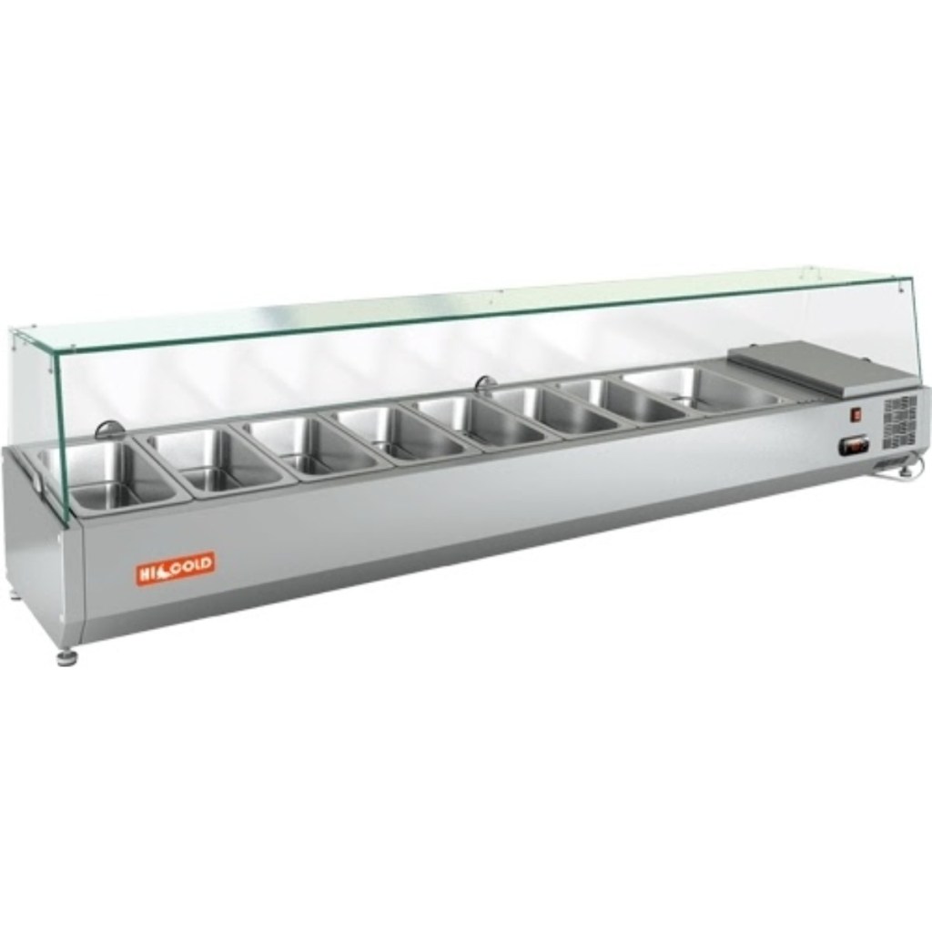Каталог оборудования Холодильное оборудованиеВитрины для ингредиентовВитрина холодильная для ингредиентов HICOLD VRTG 1915 1/3 Витрина холодильная для ингредиентов HICOLD VRTG 1915 1/3 Код товара: 001-527 Поделиться: WhatsAppTelegram СравнитьДобавить в КПВ избранное 0 72 352 ₽ В корзину 0 шт Под заказСамовывоз сегодня бесплатно Взять в кредит Купить в лизинг Получить консультацию в Max Описание Характеристики Отзывы 0 Инструкции 2 Витрина холодильная для ингредиентов HICOLD VRTG 1915 1/3 предназначена для охлаждения, кратковременного хранения и наглядной демонстрации ингредиентов, салатов и готовых блюд на предприятиях общественного питания и в торговых точках. Гастроёмкости в комплект не входят, приобретаются отдельно. Основные особенности: Корпус выполнен из нержавеющей стали, обеспечивая долговечность и легкость в уходе; Электронная панель управления для точной настройки температуры; Модель с надстройкой из стекла (исполнение G) для удобной демонстрации продуктов; Высота витрины — 225 мм, высота стеклянной надстройки — 205 мм; Вместимость: 7 гастроёмкостей GN1/3 и 1 гастроёмкость GN1/2; Опорные ножки для устойчивой установки на столешнице. HICOLD VRTG 1915 1/3 — компактная и функциональная настольная витрина, идеально подходящая для демонстрации и кратковременного хранения продуктов на профессиональной кухне или в торговой зоне.Изображение товара, представленного на фото, может отличаться от его фактического вида. Показать все Габаритные размеры1915×385×459 ммДиапазон рабочей температурыот +2 до +7 °CДлина1915 ммГлубина385 ммВысота459 ммТип крышкиСтеклянная Гастроемкостей8 штТип гастроемкостейGN1/3, GN1/2 Мощность150 ВтНапряжение220 ВТип охлажденияСтатическое Материал изготовленияНержавеющая сталь ХладагентR134 Мощность0,15 кВтВес нетто56 кгВес брутто100 кгТип оттайкиРучная Габариты в упаковке2015×485×559 ммБрендHicold Оставить отзыв Еще никто не оставил отзыв на этот товар Инструкция на HICOLD VRTG 1915.pdfДекларация о соответствии.pdf Похожие товары Перейти в каталог Под заказ 101 613 ₽ Витрина холодильная для ингредиентов TEFCOLD VK33-180 С этим товаром покупают В наличии 97 310 ₽ Стол морозильный низкотемпературный Polair TB2GN-GC В наличии 26 519 ₽ Льдогенератор Cooleq ZB-15B (пальчики) В наличии 72 582 ₽ Шкаф холодильный Polair СМ 105-S