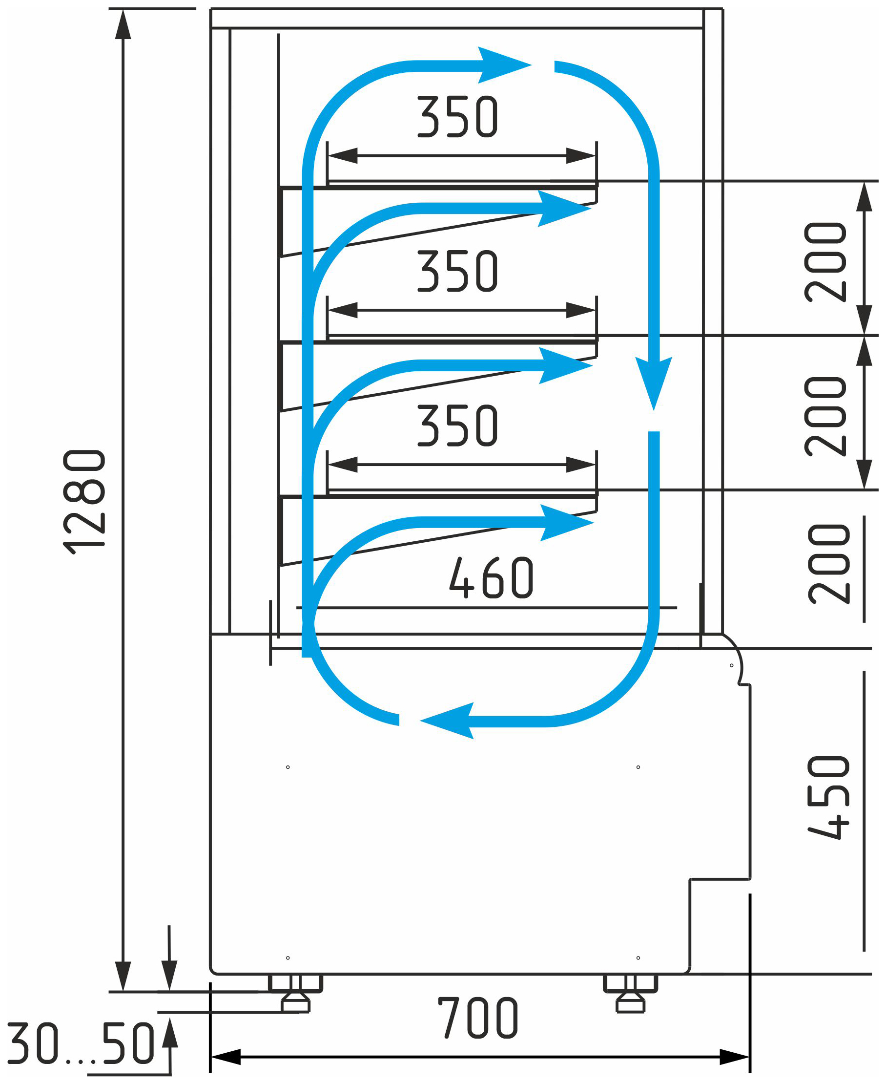 Регулируемые по высоте ножки – позволяют надёжно установить витрину на неровной поверхности.