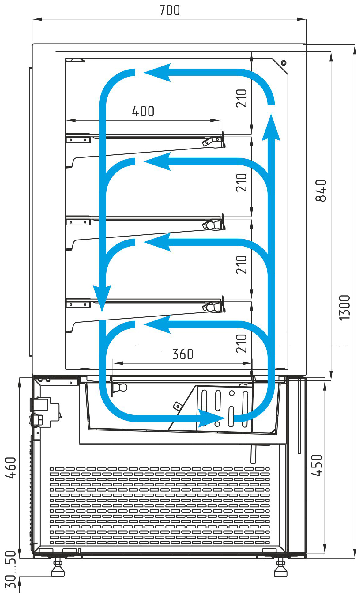 Цвет исполнения — по стандартной заводской схеме, что обеспечивает универсальность и гармоничное сочетание с большинством торговых и ресторанных интерьеров.