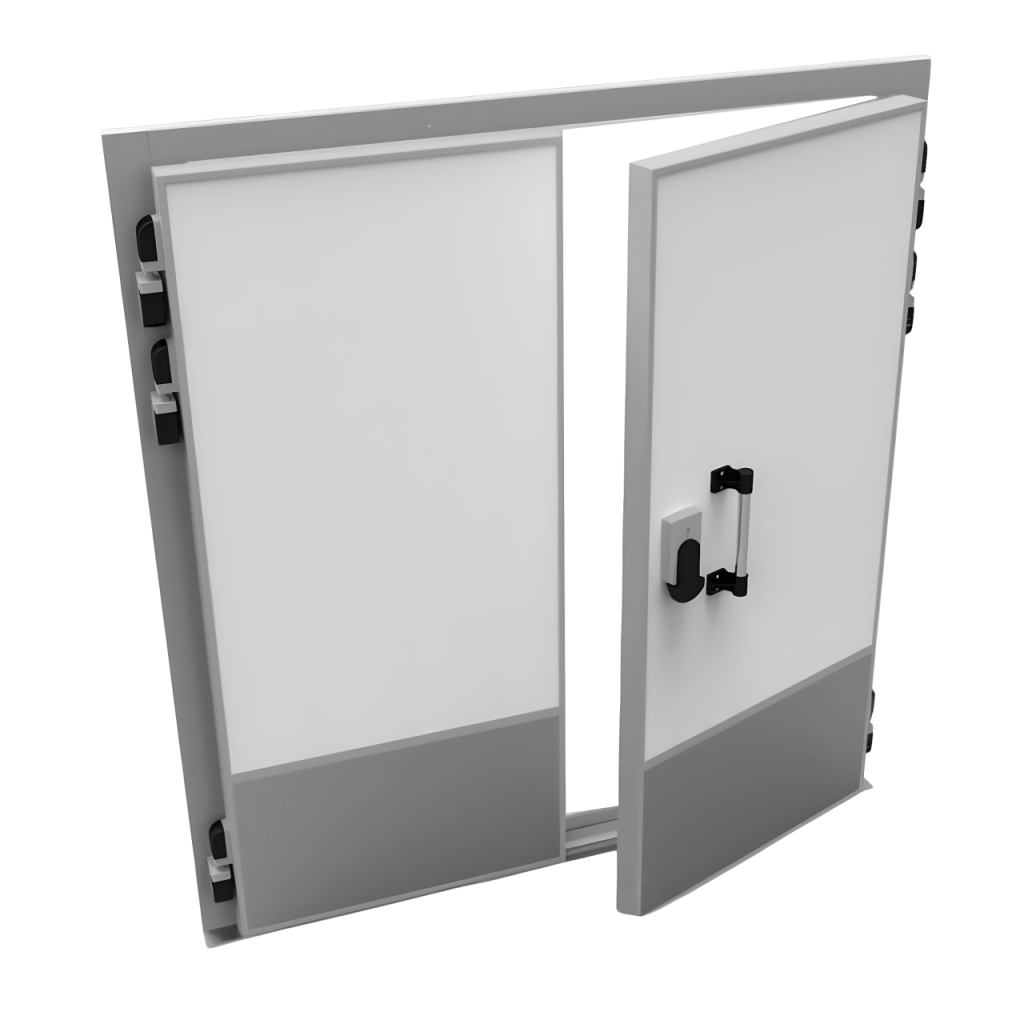 Каталог оборудования Холодильное оборудованиеДвери для холодильных камерРаспашные двустворчатые холодильные двериДверь холодильная распашная двустворчатая НТ-РДД-1400*2800/120 Дверь холодильная распашная двустворчатая НТ-РДД-1400*2800/120 Код товара: 065-769 Поделиться: WhatsAppTelegram СравнитьДобавить в КПВ избранное 0 117 279 ₽ В корзину 0 шт Под заказСамовывоз сегодня бесплатно Взять в кредит Купить в лизинг Получить консультацию в Max Описание Характеристики Отзывы 0 Инструкции 3 Холодильная распашная двустворчатая дверь НТ-РДД-1400*2800/120 используется в средне- и низкотемпературных промышленных холодильных камерах, складах и холодильных терминалах, которые используются для хранения и охлаждения продукции. Преимущества двери: Высокая теплоизоляция: Толщина двери 120 мм и наполнитель из пенополиуретана плотностью 45-50 кг/м³ обеспечивают эффективную теплоизоляцию, минимизируя потери энергии. Герметичность: Одинарный контур съемного резинового уплотнения с сотовой структурой исключает образование «мостиков холода», обеспечивая плотное прилегание и защиту от теплопотерь. Температурный режим: Двери предназначены для эксплуатации при температурах от -5°С до -20°С, что делает их идеальными для среднетемпературных условий. Долговечность: Поверхность двери выполнена из оцинкованной стали толщиной 0,45-0,5 мм с полиэфирным покрытием белого цвета, устойчивым к коррозии и механическим повреждениям. Полотно обрамлено алюминиевым профилем, что придает конструкции дополнительную прочность и эстетичный внешний вид. Безопасность и удобство: Двери оснащены ручкой с замком итальянского производства (МТН) и устройством аварийного открывания изнутри, что гарантирует безопасность персонала в случае случайного запирания. Регулируемые петли позволяют точно настроить положение двери по вертикали и горизонтали, обеспечивая плотное прилегание и удобство эксплуатации. Эта дверь – идеальное решение для объектов, где требуется поддержание стабильных низких или средних температур. Благодаря высокой теплоизоляции, герметичности и надежной конструкции, она обеспечивает энергосбережение и оптимальные условия хранения продукции. Это надежный выбор для тех, кто ценит качество, долговечность и энергоэффективность. Изображение товара, представленного на фото, может отличаться от его фактического вида. Показать все Ширина светового проема1400 ммВысота светового проема2800 ммТемпературный режимНизкотемпературный (до -25) Толщина двери120 ммБрендСевер Оставить отзыв Еще никто не оставил отзыв на этот товар Чертеж двери для холодильной камеры.jpgСхема монтажа двери для холодильной камеры.jpgБуклет двери изотермические и технологические ТМ Север.pdf Похожие товары Перейти в каталог Под заказ 91 518 ₽ Дверь холодильная распашная двустворчатая НТ-РДД-1600*1856/80 Под заказ 94 801 ₽ Дверь холодильная распашная двустворчатая НТ-РДД-1800*1856/80 Под заказ 98 077 ₽ Дверь холодильная распашная двустворчатая НТ-РДД-2000*1856/80 Под заказ 102 985 ₽ Дверь холодильная распашная двустворчатая НТ-РДД-2200*1856/80 С этим товаром покупают Под заказ 173 245 ₽ Камера холодильная Polair КХН-1,28 Minicella ММ с агрегатом Под заказ 109 622 ₽ Моноблок холодильный среднетемпературный Polair MM115ST В наличии 82 430 ₽ Сплит-система холодильная среднетемпературная Polair SM 111 S Под заказ 379 313 ₽ Компрессорно-конденсаторный агрегат POLAIR CUB - LLZ015 Под з
