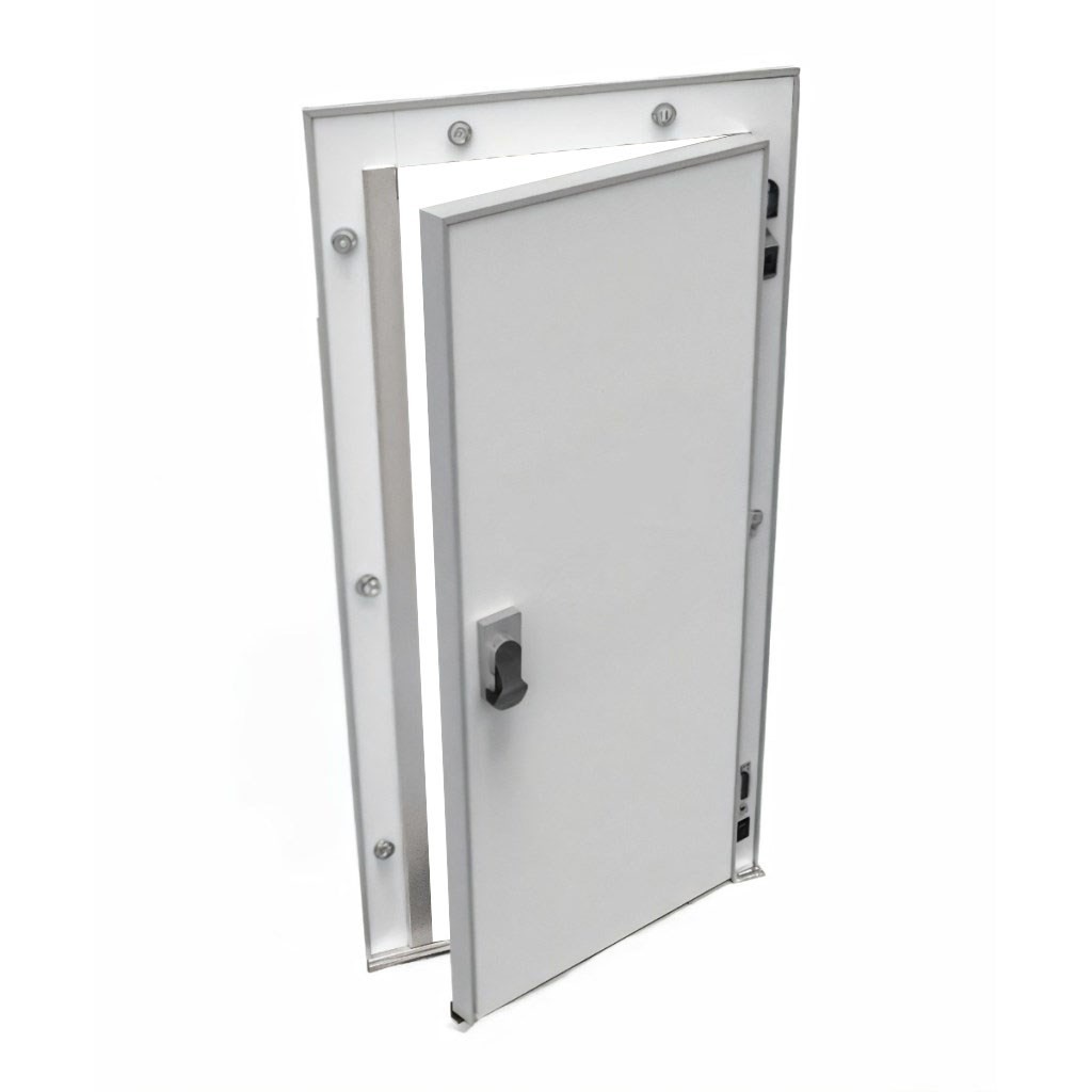 Каталог оборудования Холодильное оборудованиеДвери для холодильных камерРаспашные одностворчатые холодильные двериДверь холодильная распашная одностворчатая НТ-РДО-900*2100/80 (с металлической рамой) Дверь холодильная распашная одностворчатая НТ-РДО-900*2100/80 (с металлической рамой) Код товара: 065-814 Поделиться: WhatsAppTelegram СравнитьДобавить в КПВ избранное 0 44 805 ₽ В корзину 0 шт Под заказСамовывоз сегодня бесплатно Взять в кредит Купить в лизинг Получить консультацию в WhatsApp Описание Характеристики Отзывы 0 Инструкции 1 Дверь холодильная распашная одностворчатая НТ-РДО-900*2100/80 (с металлической рамой) – надежное и энергоэффективное решение для установки на предприятиях пищевой промышленности, в логистических центрах, на складах и терминалах. Дверь спроектирована для стабильной работы при экстремально низких температурах, что делает её оптимальным выбором для объектов с повышенными требованиями к сохранности продукции. В низкотемпературном исполнении НТ-80 дверь предназначена для эксплуатации при температурах от -5° до -20°. Особенности: Теплоизоляция: плита из пенополиуретана Dow Izolan высокой плотности (40–45 кг/м³) обеспечивает минимальные теплопотери, не содержит вредных хлорфторуглеродов и безопасна для пищевых производств. Пожаробезопасность: предел огнестойкости EI 15 позволяет использовать дверь в зонах с повышенными требованиями к безопасности. Конструкция: прочная рама из анодированного алюминия устойчива к коррозии, дверное полотно покрыто оцинкованной сталью толщиной 0,45–0,65 мм с полиэфирным слоем (RAL 9003), что обеспечивает долговечность и гигиеничность. Герметичность: двухконтурное резиновое уплотнение сотовой структуры на ПВХ-основе исключает мосты холода. Для низкотемпературных камер предусмотрен двухконтурный электрообогрев по периметру, предотвращающий намерзание. Фурнитура: комплектуется надежной европейской фурнитурой. Замок оснащён системой аварийного открывания с флуоресцентной маркировкой, что исключает риск блокировки персонала внутри камеры. Холодильная дверь НТ-РДО-900*2100/80 сочетает в себе прочность, долговечность и высокую энергоэффективность. Она гарантирует надежное сохранение температурного режима и безопасность эксплуатации, полностью соответствуя требованиям предприятий пищевой отрасли и объектов хранения.Изображение товара, представленного на фото, может отличаться от его фактического вида. Показать все Ширина светового проема900 ммВысота светового проема2100 ммТемпературный режимНизкотемпературный (до -25) Толщина двери80 ммОткрываниеЛевое/Правое Замок с аварийным открываниемДа БрендСевер Оставить отзыв Еще никто не оставил отзыв на этот товар Буклет двери изотермические и технологические ТМ Север.pdf Ранее просмотрено Под заказ 47 328 ₽ Дверь холодильная распашная одностворчатая НТ-РДО-800*2100/120 (с металлической рамой)