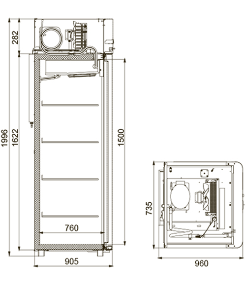 Каталог оборудования Холодильное оборудованиеШкафы холодильныеШкафы морозильные низкотемпературные до -18 °СШкаф морозильный Polair Polair CB107-Gm Alu Шкаф морозильный Polair Polair CB107-Gm Alu Код товара: 062-591 Поделиться: WhatsAppTelegram СравнитьДобавить в КПВ избранное 0 163 200 ₽ В корзину 0 шт Под заказСамовывоз сегодня бесплатно Взять в кредит Купить в лизинг Получить консультацию в WhatsApp Описание Характеристики Отзывы 0 Инструкции 4 Шкаф морозильный Polair Polair CB107-Gm Alu разработан для демонстрации и надежного хранения продуктов на предприятиях общественного питания и торговли. Цельнозаливной корпус выполнен из нержавеющей стали как снаружи, так и внутри (кроме задней стенки), что гарантирует высокую прочность и долговечность конструкции. Алюминиевые профили дверей и верхней панели подчеркивают современный и премиальный внешний вид шкафа. Оборудование рассчитано на работу при температуре окружающей среды до +40 °С и относительной влажности воздуха до 80%, что делает его надежным решением даже в сложных условиях эксплуатации. Основные особенности: Многофункциональная контрольная панель с жидкокристаллическим дисплеем Верхнее расположение агрегата, обеспечивающее удобный доступ к внутреннему объему Поддержка дистанционного мониторинга и записи данных в журнал контроллера (при использовании сетевой карты), а также передача данных через Bluetooth Клапан Шредера и компенсационный клапан с ПЭНом обогрева ПЭН обогрева трубки слива конденсата и ПЭН обогрева дверного проема для предотвращения образования наледи Распашные двери с полностью интегрированными ручками и эластичными магнитными уплотнителями, обеспечивающими максимальную герметизацию Микропереключатель, отключающий вентилятор и включающий подсветку при открытии дверей Встроенная внутренняя подсветка, улучшающая обзор содержимого Регулируемые по высоте ножки и педаль для удобного открывания двери Замок для обеспечения безопасности хранения 4 полки формата GN 2/1 (530×650 мм) с допустимой нагрузкой до 40 кг Толщина теплоизоляции корпуса — 61 мм Изображение товара, представленного на фото, может отличаться от его фактического вида. Показать все Габаритные размеры735×945×1996 ммДиапазон рабочей температурыдо -18 °CДлина735 ммГлубина450 ммВысота1996 ммОбъём700 лМатериал корпусаНержавеющая сталь Тип охлажденияДинамическое Тип управленияМеханическое Расход электроэнергии в сутки12 кВтКоличество полок2 штКоличество дверей1 штЗамокЕсть Тип двериМеталлическая Способ открыванияРаздвижные (купе) Напряжение220 ВХладагентR290 Расположение агрегатаНижнее Габариты в упаковке850×988×2160 ммВес нетто128 кгВес брутто152 кгБрендPolairВсе шкафы морозильные низкотемпературные до -18 °С POLAIRВсе шкафы морозильные низкотемпературные до -18 °С 4 уровня Оставить отзыв Еще никто не оставил отзыв на этот товар Схема POLAIR CB107-Gm Alu.jpgИнструкция на POLAIR CB107-Gm Alu.pdfДекларация о соответствии.pdfСертификат соответствия.pdf Похожие товары Перейти в каталог В наличии 162 702 ₽ Шкаф морозильный с глухой дверью TEFCOLD GUF70 нержавеющий Под заказ 127 794 ₽ Шкаф морозильный Ангара 700 М Под заказ 171 328 ₽ Шкаф морозильный Рапсодия R 1400 LX В наличии 140 109 ₽ Шкаф морозильный Tatra TRC500 BT В наличии 123 126 ₽ Шкаф морозильный МХМ Капри 0,5НСК Под заказ 203 065 ₽ Шкаф морозильны Polair CB-114G Под заказ 231 433 ₽ Шкаф морозильный Polair CB114-Gm Под заказ 83 245 ₽ Шкаф морозильный HURAKAN HKN-BCS120F С этим товар