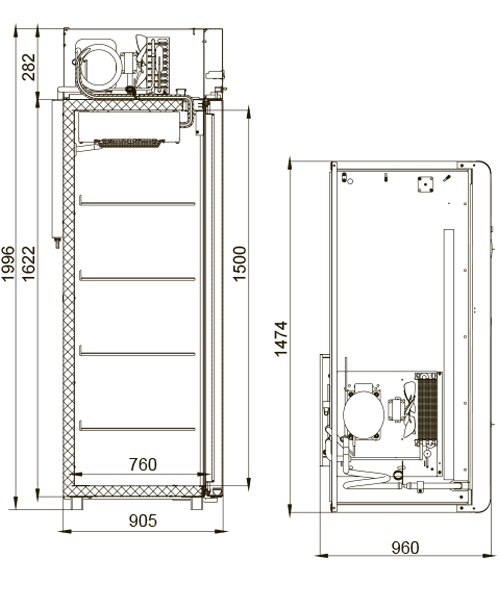 Каталог оборудования Холодильное оборудованиеШкафы шоковой заморозкиШкаф шоковой заморозки Polair CB114-Sm Alu Шкаф шоковой заморозки Polair CB114-Sm Alu Код товара: 062-597 Поделиться: WhatsAppTelegram СравнитьДобавить в КПВ избранное 0 249 375 ₽ В корзину 0 шт Под заказСамовывоз сегодня бесплатно Взять в кредит Купить в лизинг Получить консультацию в WhatsApp Описание Характеристики Отзывы 0 Инструкции 3 Шкаф шоковой заморозки Polair CB114-Sm Alu — это профессиональный морозильный шкаф, разработанный для демонстрации и хранения продуктов в заведениях общественного питания и торговли. Благодаря цельнозаливному корпусу из стали с полимерным покрытием и алюминиевыми профилями, шкаф отличается высокой механической прочностью, надежностью и современным премиальным дизайном. Шкаф стабильно работает при температуре окружающей среды до +40 °С и относительной влажности до 80%, что делает его универсальным для использования в самых разных условиях. Ключевые особенности: Электронный терморегулятор с ЖК-дисплеем — точная настройка и удобный контроль температуры. Верхнее расположение агрегата — экономия полезного пространства внутри камеры. Клапан Шредера и компенсационный клапан с подогревом — облегчение сервисного обслуживания и надежная работа при перепадах давления. ПЭН обогрева дверного проема, трубки слива конденсата, компенсационного клапана и ТЭН поддона воздухоохладителя — предотвращают образование наледи и обеспечивают бесперебойную работу. Распашные двери с интегрированными ручками — удобство эксплуатации и современный вид. Эластичные уплотнители с магнитными вставками — максимальная герметизация. Внутренняя светодиодная подсветка — улучшает обзор продуктов. Микропереключатель — автоматическое отключение вентилятора и включение подсветки при открытии двери. Регулируемые по высоте ножки и педаль открывания двери — повышают удобство использования. Замок — для надежной фиксации содержимого. 8 прочных полок формата GN 2/1 (530×650 мм), каждая выдерживает нагрузку до 40 кг. Толщина стенки корпуса — 61 мм — обеспечивает качественную термоизоляцию. Polair CB114-Sm Alu — это надежное, функциональное и эргономичное оборудование, которое сочетает продуманный современный дизайн с высокой производительностью. Он идеально подходит для заведений, где важны как удобство эксплуатации, так и презентация продукции.Изображение товара, представленного на фото, может отличаться от его фактического вида. Показать все Габаритные размеры1474×960×1996 ммДиапазон рабочей температурыдо -18 °CШирина960 ммДлина1474 ммВысота1996 ммОбъём1400 лКоличество уровней8 штМощность0,8 кВтРасход электроэнергии в сутки12 кВтНапряжение220 ВТип охлажденияДинамическое Размер гастроемкостей530×650 ммТип гастроемкостейGN 2/1 ХладагентR290 Габариты в упаковке1550x1000x2150 ммВес нетто212 кгВес брутто242 кгВсе шкафы шоковой заморозки POLAIR Оставить отзыв Еще никто не оставил отзыв на этот товар Инструкция на POLAIR CB114-Sm Alu.pdfСхема POLAIR CB114-Sm Alu.jpgДекларация о соответствии.pdf Ранее просмотрено Под заказ 168 031 ₽ Горка холодильная Carboma FC20-07 VM 1,0-2 0030 (версия 2.0) (9006-9005) (бок металл с зеркалом) Под заказ 305 190 ₽ Горка холодильная Carboma FC20-07 VV 1,9-1 0300 STANDARD фронт X1 (версия 2.0) (9006-9005) (бок металл) Под заказ 462 420 ₽ Горка холодильная Carboma FC20-07 VV 2,5-1 0030 STANDARD фронт X1 (версия 2.0) (9006-9005) (бок металл с зеркалом)