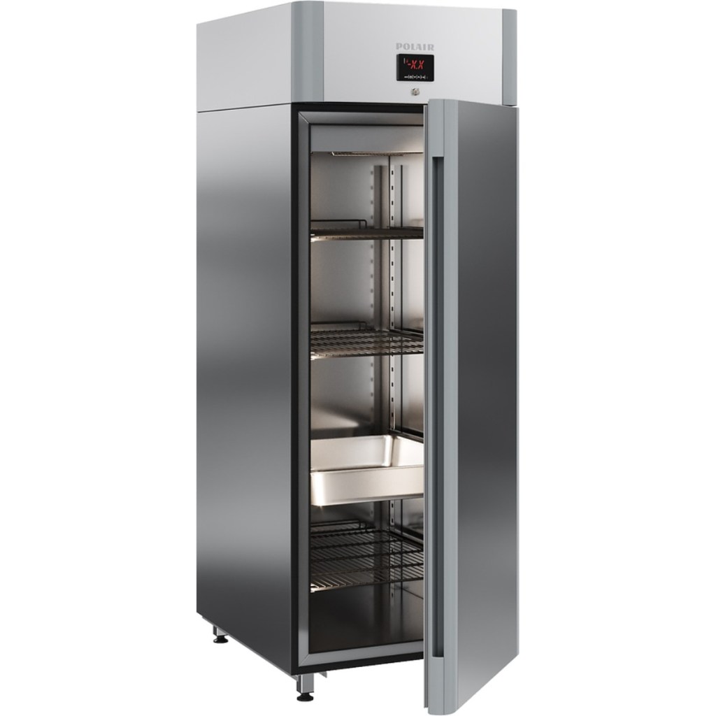 Каталог оборудования Холодильное оборудованиеШкафы холодильныеШкафы холодильные универсальные от -5 до +5 °СШкаф холодильный универсальный Polair CV107-Gm Alu Шкаф холодильный универсальный Polair CV107-Gm Alu Код товара: 062-610 Поделиться: WhatsAppTelegram СравнитьДобавить в КПВ избранное 0 149 175 ₽ В корзину 0 шт Под заказСамовывоз сегодня бесплатно Взять в кредит Купить в лизинг Получить консультацию в WhatsApp Описание Характеристики Отзывы 0 Инструкции 4 Шкаф холодильный универсальный Polair CV107-Gm Alu предназначен для демонстрации и надежного хранения продуктов на предприятиях общественного питания и торговли. Корпус шкафа цельнозаливной, выполнен из прочной стали с полимерным покрытием, что гарантирует высокую механическую прочность и длительный срок службы. Алюминиевые профили дверей и верхней панели подчеркивают современный, премиальный дизайн. Оборудование эффективно работает при температуре окружающей среды до 40 °С и влажности воздуха до 80%. Особенности модели: Многофункциональная контрольная панель (терморегулятор) для удобного управления параметрами. Жидкокристаллический дисплей, обеспечивающий чёткое отображение настроек и информации о работе шкафа. Клапан Шредера для удобного обслуживания холодильного контура. Распашной тип двери для легкого доступа к продуктам. Возможность изменить сторону открывания двери (при наличии опции), что делает установку более универсальной. Полностью интегрированные в профили дверей ручки, подчеркивающие стильный внешний вид и удобство использования. Встроенная светодиодная подсветка для отличной видимости содержимого шкафа. Надежный замок для защиты продуктов. Педаль для удобного открывания двери без использования рук. Высокая допустимая нагрузка на полку — до 40 кг, что позволяет хранить большие объемы продукции. Размер полки: GN 2/1 (530×650 мм), подходит для стандартных гастроемкостей. Толщина стенки корпуса — 43 мм, обеспечивающая отличную теплоизоляцию и снижение энергопотерь. Polair CV107-Gm Alu — это функциональный и стильный холодильный шкаф, который сочетает надежность, эргономичный дизайн и удобство эксплуатации. Использование прочных материалов и продуманная конструкция делают его идеальным решением для профессиональной кухни или торгового зала.Изображение товара, представленного на фото, может отличаться от его фактического вида. Показать все Габаритные размеры697×925×1960 ммДиапазон рабочей температурыот -5 до +5 °CДлина697 ммГлубина925 ммВысота695 ммОбъём700 лРазмер полки530×650 ммКоличество полок4 штКоличество дверей1 штТип оттайкиАвтоматическая Тип охлажденияДинамическое Тип управленияЭлектронное Материал корпусаНержавеющая сталь Тип двериМеталлическая ЗамокЕсть Способ открыванияРаспашные ХладагентR290 Холодильный агрегатВстроенный Расположение агрегатаВерхнее Потребление электроэнергии в сутки4,5 кВтПотребляемая мощность0,4 кВтНапряжение220 ВГабариты в упаковке800×1000×2150 ммВес нетто115 кгВес брутто140 кгБрендPolairВсе шкафы холодильные универсальные от -5 до +5 °С Из нержавейки Оставить отзыв Еще никто не оставил отзыв на этот товар Схема POLAIR CV107-Gm Alu.jpgИнструкция на POLAIR CV107-Gm Alu.pdfДекларация о соответствии.pdfСертификат соответствия.pdf Похожие товары Перейти в каталог Под заказ 176 862 ₽ Шкаф холодильный Abat ШХ-1,4 В наличии 105 035 ₽ Шкаф холодильный универсальный Север ШХ-500 УН/РС Под заказ 101 178 ₽ Шкаф холод