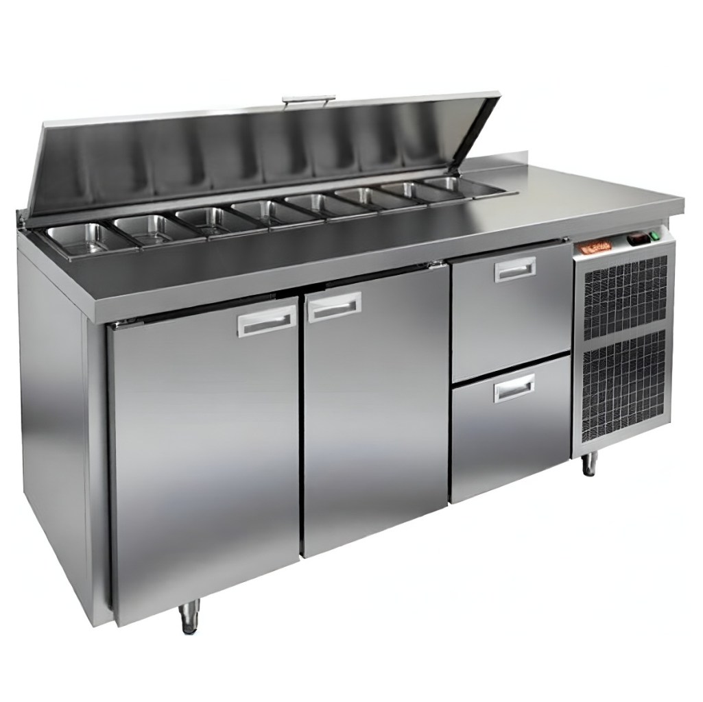 Модель совмещает охлаждаемый объем и рабочую поверхность, что значительно повышает удобство и скорость работы персонала. Корпус и столешница выполнены из прочной и гигиеничной нержавеющей стали, устойчивой к влаге, загрязнениям и механическим повреждениям. Металлическая крышка защищает продукты от загрязнений и сохраняет их свежесть.