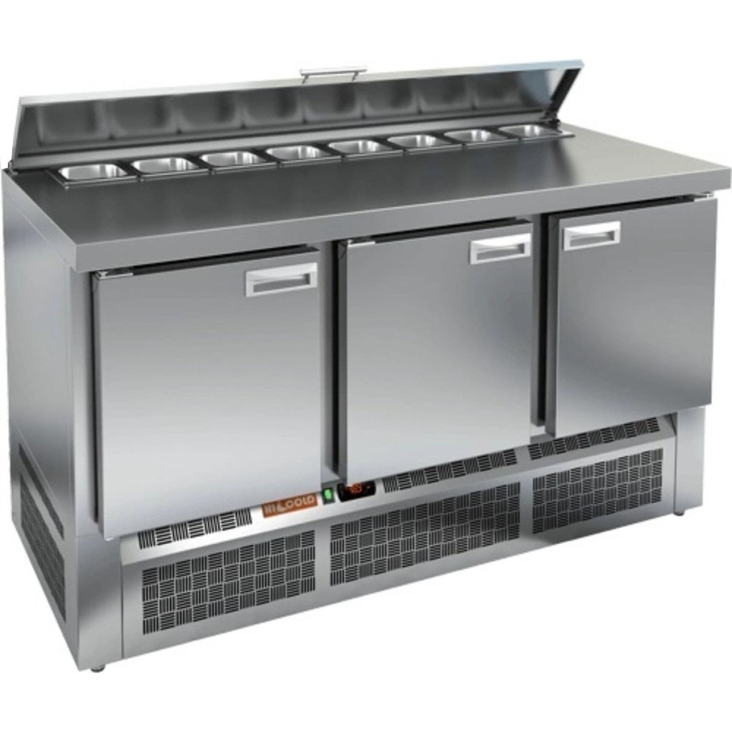 Каталог оборудования Холодильное оборудованиеСтолы охлаждаемыеСтолы холодильные для салатовСтол холодильный для салатов HiCold SLE2-111SN (1/6) О с крышкой Стол холодильный для салатов HiCold SLE2-111SN (1/6) О с крышкой Код товара: 064-872 Поделиться: WhatsAppTelegram СравнитьДобавить в КПВ избранное 0 146 782 ₽ В корзину 0 шт Под заказСамовывоз сегодня бесплатно Взять в кредит Купить в лизинг Получить консультацию в WhatsApp Описание Характеристики Отзывы 0 Инструкции 2 Стол холодильный для салатов HiCold SLE2-111SN (1/6) О с крышкой предназначен для предприятий общественного питания и торговли. Он используется для хранения, охлаждения и обработки ингредиентов, применяемых при приготовлении салатов, пиццы, закусок и других блюд. Модель объединяет удобную рабочую поверхность и охлаждаемый отсек, позволяя повару иметь все необходимое под рукой. Конструкция выполнена из прочной нержавеющей стали, устойчивой к коррозии и легкой в уходе. Металлическая крышка защищает продукты от загрязнений и сохраняет их свежесть. Особенности модели: Электронная панель управления — точная настройка температуры и контроль за режимами работы. 3 вместительные внутренние полки — рациональное распределение хранения. Салат-бар вмещает 8 гастроемкостей — оптимальная организация ингредиентов. Автоматические доводчики дверей с фиксацией в открытом положении — удобно при загрузке и выгрузке продуктов. Магнитные уплотнители — легко заменяются, обеспечивая герметичность. Открытая агрегатная часть — упрощает техническое обслуживание. Регулируемые по высоте ножки — позволяют установить оборудование на любой поверхности. Глубина гастроемкостей — до 100 мм. Толщина столешницы и теплоизоляции — по 50 мм, что способствует сохранению холода и прочности конструкции. HiCold SLE2-111SN (1/6) О с крышкой — это функциональный и надёжный салатный стол, сочетающий в себе удобство работы и эффективное охлаждение. Отличное решение для кухни с интенсивной нагрузкой. Изображение товара, представленного на фото, может отличаться от его фактического вида. Показать все Габаритные размеры1485×600×850 ммДиапазон рабочей температурыот +2 до +10 °CРасположение агрегатаНижнее Материал столешницыНержавеющая Тип столаС дверьми Тип двериГлухая Объём320 лКоличество дверей3 штТип гастроемкостейGN 1/6 Размер полки430×325 ммНапряжение220 ВМощность0,22 кВтТип охлажденияДинамическое Тип оттайкиАвтоматическая СтолешницаБез борта Габариты в упаковке1700×750×1080 ммВес нетто88 кгВес брутто148 кгБрендHicold Оставить отзыв Еще никто не оставил отзыв на этот товар Паспорт на HICOLD SLE2-111SN О.pdfДекларация о соответствии.pdf Ранее просмотрено Под заказ 120 862 ₽ Стол холодильный для салатов HiCold SLE1-11GN (1/3) без крышки