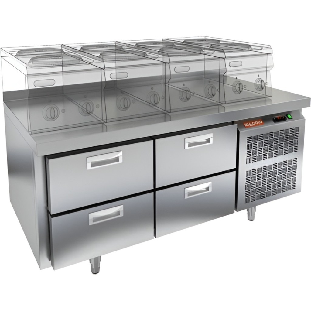 Каталог оборудования Холодильное оборудованиеСтолы охлаждаемыеСтолы холодильные под тепловое оборудованиеСтол охлаждаемый HiCold SN 22/TN LT О под тепловое оборудование Стол охлаждаемый HiCold SN 22/TN LT О под тепловое оборудование Код товара: 065-539 Поделиться: WhatsAppTelegram СравнитьДобавить в КПВ избранное 0 172 162 ₽ В корзину 0 шт Под заказСамовывоз сегодня бесплатно Взять в кредит Купить в лизинг Получить консультацию в WhatsApp Описание Характеристики Отзывы 0 Инструкции 2 Стол охлаждаемый HiCold SN 22/TN LT О под тепловое оборудование предназначен для обработки ингредиентов и временного хранения скоропортящихся продуктов и напитков на предприятиях общественного питания и торговли. Устройство совмещает функции рабочей поверхности и холодильной камеры. Столешница рассчитана на установку теплового оборудования: под рабочей поверхностью встроен ДСП-лист, который укрепляет конструкцию и препятствует проникновению тепла внутрь. Такое решение обеспечивает дополнительную жесткость, позволяет рационально использовать рабочее пространство и повышает эффективность работы на кухне. Внимание! На фото показан стол с бортом. Данная модель поставляется без борта. Особенности: 4 выдвижных ящика — обеспечивают удобный доступ к продуктам и инвентарю Автоматические доводчики дверей с фиксатором открытого положения повышают эргономику и способствуют сохранению холода. Легкозаменяемые магнитные уплотнители обеспечивают плотное прилегание дверей и лёгкость в обслуживании. Открытая агрегатная часть упрощает доступ к компрессору при техническом обслуживании. Регулируемые по высоте ножки позволяют установить стол на неровной поверхности. Столешница без борта, толщина 50 мм — увеличенная рабочая площадь, устойчивая к нагрузкам и механическому воздействию. Толщина теплоизоляции — 50 мм способствует энергоэффективности и стабильному температурному режиму. HiCold SN 22/TN LT О — это надёжное и удобное оборудование, сочетающее охлаждение и рабочее пространство. Благодаря продуманной конструкции и совместимости с гастроемкостями GN 1/1, стол станет практичным решением для кухни любого профессионального уровня.Изображение товара, представленного на фото, может отличаться от его фактического вида. Показать все Габаритные размеры1390×600×675 ммДиапазон рабочей температурыот -2 до +10 °CМатериал столешницыНержавеющая Расположение агрегатаБоковое Объём220 лТип столаС ящиками Количество ящиков4 штРазмер полки530×325 ммНапряжение220 ВМощность0,22 кВтТип охлажденияДинамический Тип оттайкиАвтоматическая СтолешницаБез борта Габариты в упаковке1550×750×850 ммВес нетто125 кгВес брутто147 кгБрендHicold Оставить отзыв Еще никто не оставил отзыв на этот товар Паспорт на HICOLD SN 22TN LT О.pdfДекларация о соответствии.pdf Похожие товары Перейти в каталог В наличии 77 661 ₽ Стол холодильный среднетемпературный HiCold GN 11/TN W Под заказ 125 670 ₽ Стол холодильный среднетемпературный Abat СХС-70-01 с бортом (дверь, дверь) С этим товаром покупают В наличии 201 690 ₽ Шкаф морозильный Полюс Carboma F1400 В наличии 195 030 ₽ Плита индукционная Аbat КИП-47Н Ранее просмотрено Под заказ 170 362 ₽ Стол охлаждаемый HiCold SN 22/TN LT SH под тепловое оборудование Под заказ 195 112 ₽ Стол охлаждаемый HiCold GN 11/TN LT О М под тепловое оборудование Под заказ 224 092 ₽ Стол охлаждаемый HiCold GN 222/TN LT O под тепловое оборудование Под заказ 191 872 ₽ Стол морозильный HiCold GN 22/BT L