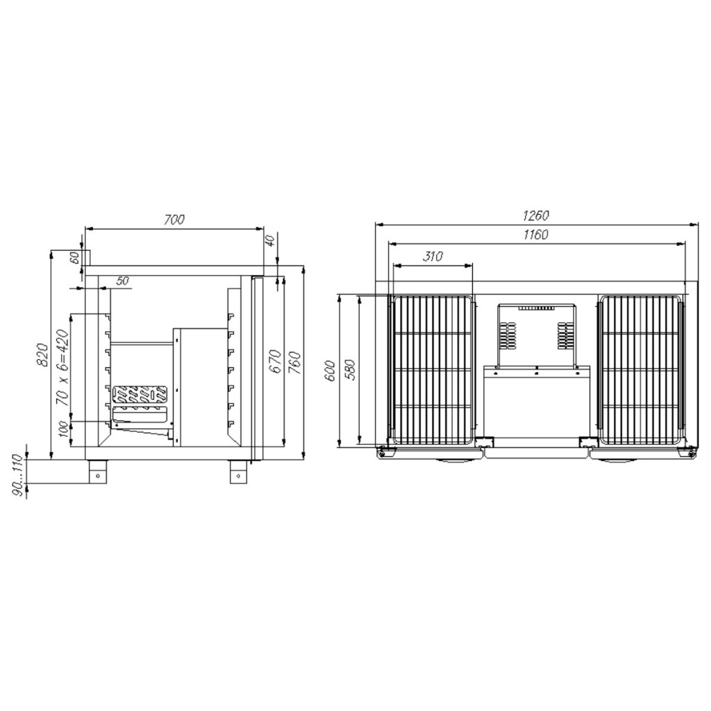 Стол холодильный среднетемпературный Carboma T70 M2-1 (2GN/NT Полюс) с бортом (9006-2 корпус серый 2 двери) — профессиональное оборудование для предприятий общественного питания и торговли. Предназначен для раскатки теста, подготовки ингредиентов, охлаждения и кратковременного хранения скоропортящихся продуктов и напитков. Модель оснащена двумя распашными дверями, четырьмя полками и регулируемыми ножками высотой от 90 до 110 мм.