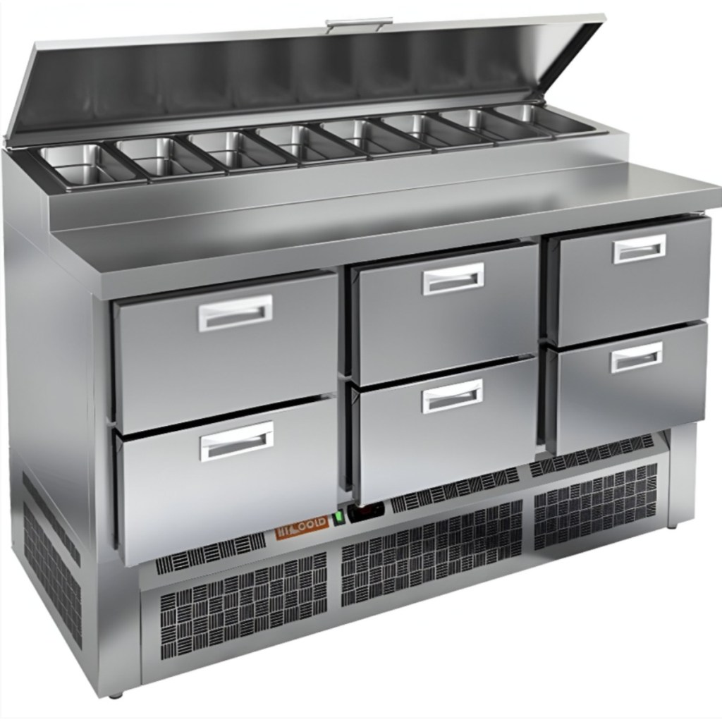 Каталог оборудования Холодильное оборудованиеСтолы охлаждаемыеСтолы холодильные для пиццыСтол холодильный для пиццы HiCold PZE1-222GN (1/3) Стол холодильный для пиццы HiCold PZE1-222GN (1/3) Код товара: 064-727 Поделиться: WhatsAppTelegram СравнитьДобавить в КПВ избранное 0 278 361 ₽ В корзину 0 шт Под заказСамовывоз сегодня бесплатно Взять в кредит Купить в лизинг Получить консультацию в WhatsApp Описание Характеристики Отзывы 0 Стол холодильный для пиццы HiCold PZE1-222GN (1/3) — профессиональное оборудование для предприятий общественного питания и торговли. Он предназначен для раскатки теста и подготовки ингредиентов, используемых при приготовлении пиццы, салатов и других блюд, а также для охлаждения и кратковременного хранения скоропортящихся продуктов и напитков. Совмещение рабочей поверхности и охлаждаемого блока значительно упрощает работу повара — все необходимые компоненты находятся под рукой. Корпус и столешница выполнены из нержавеющей стали, обеспечивая долговечность, устойчивость к повреждениям и лёгкость ухода. Основные особенности: Динамическая система охлаждения — равномерное распределение холода по всему объёму Автоматическая оттайка — стабильная работа без образования наледи Электронная панель управления — точная настройка температуры 6 выдвижных ящика — удобная организация внутреннего пространства Автоматические доводчики ящиков — комфорт при работе Легкозаменяемые магнитные уплотнители — поддержание герметичности Открытая агрегатная часть — лёгкий доступ к техническим элементам Регулируемые по высоте ножки — установка на неровных поверхностях Максимальная глубина гастроёмкостей: 100 мм Глубина рабочей поверхности: 324 мм Толщина столешницы: 50 мм Толщина теплоизоляции: 50 мм Вместимость салат-бара: до 8 гастроёмкостей HiCold PZE1-222GN (1/3) с четырьмя выдвижными ящиками — надёжный и функциональный холодильный стол для пиццы и салатов. Продуманная организация хранения и удобство эксплуатации обеспечивают быстрый доступ к ингредиентам и повышают производительность на профессиональной кухне.Изображение товара, представленного на фото, может отличаться от его фактического вида. Показать все Габаритные размеры1485×700×990 ммДиапазон рабочей температурыот +2 до +10 °CРасположение агрегатаНижнее Материал столешницыНержавеющая Тип столаС ящиками Объём375 лТип гастроемкостейGN 1/3 Количество ящиков6 штНапряжение220 ВМощность0,22 кВтТип охлажденияДинамическое Тип оттайкиАвтоматическая Габариты в упаковке1680×840×1170 ммВес нетто115 кгВес брутто153 кгБрендHicoldВсе холодильные столы для пиццы HicoldВсе нержавеющие холодильные столы для пиццы Оставить отзыв Еще никто не оставил отзыв на этот товар Ранее просмотрено Под заказ 244 971 ₽ Стол холодильный для пиццы HiCold PZ1-112GN (1/3H) Под заказ 244 971 ₽ Стол холодильный для пиццы HiCold PZ2-211/GN (1/6H)